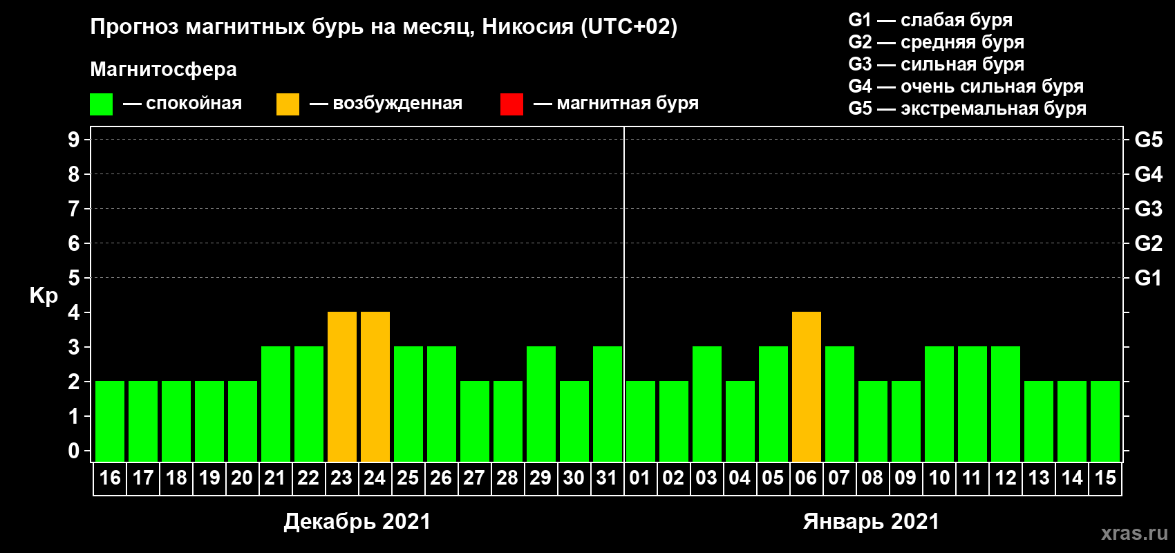 Прогноз магнитных бурь в Никосии — 16 декабря 2020 года