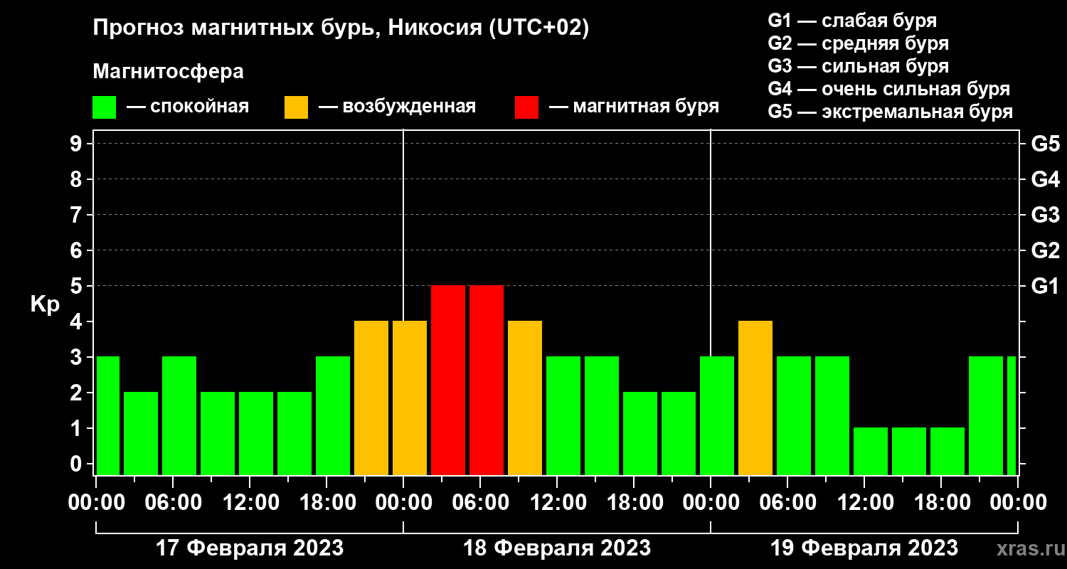 Прогноз магнитных бурь в Никосии — 17 февраля 2023 года