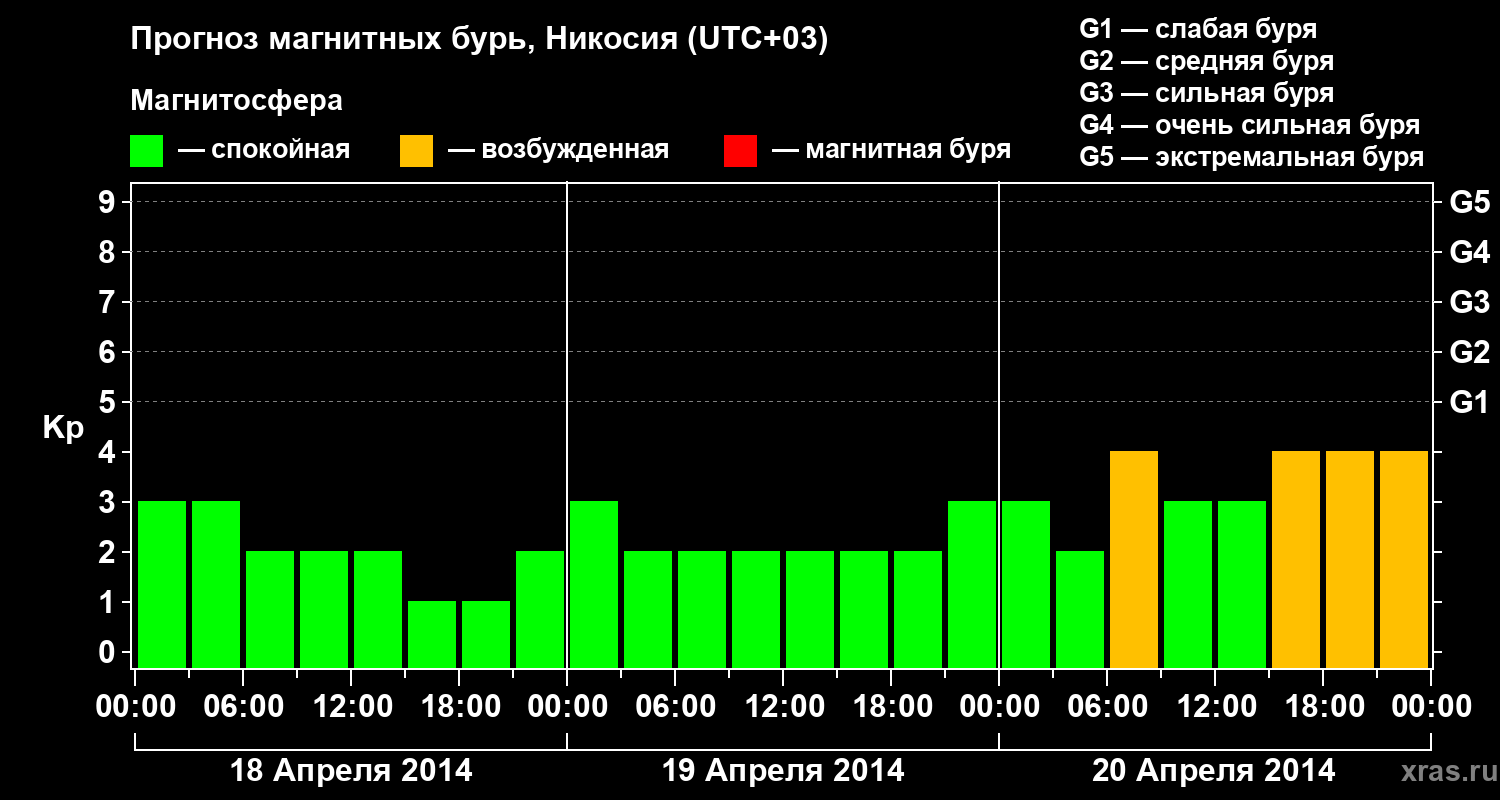 Прогноз магнитных бурь в Никосии — 18 апреля 2014 года