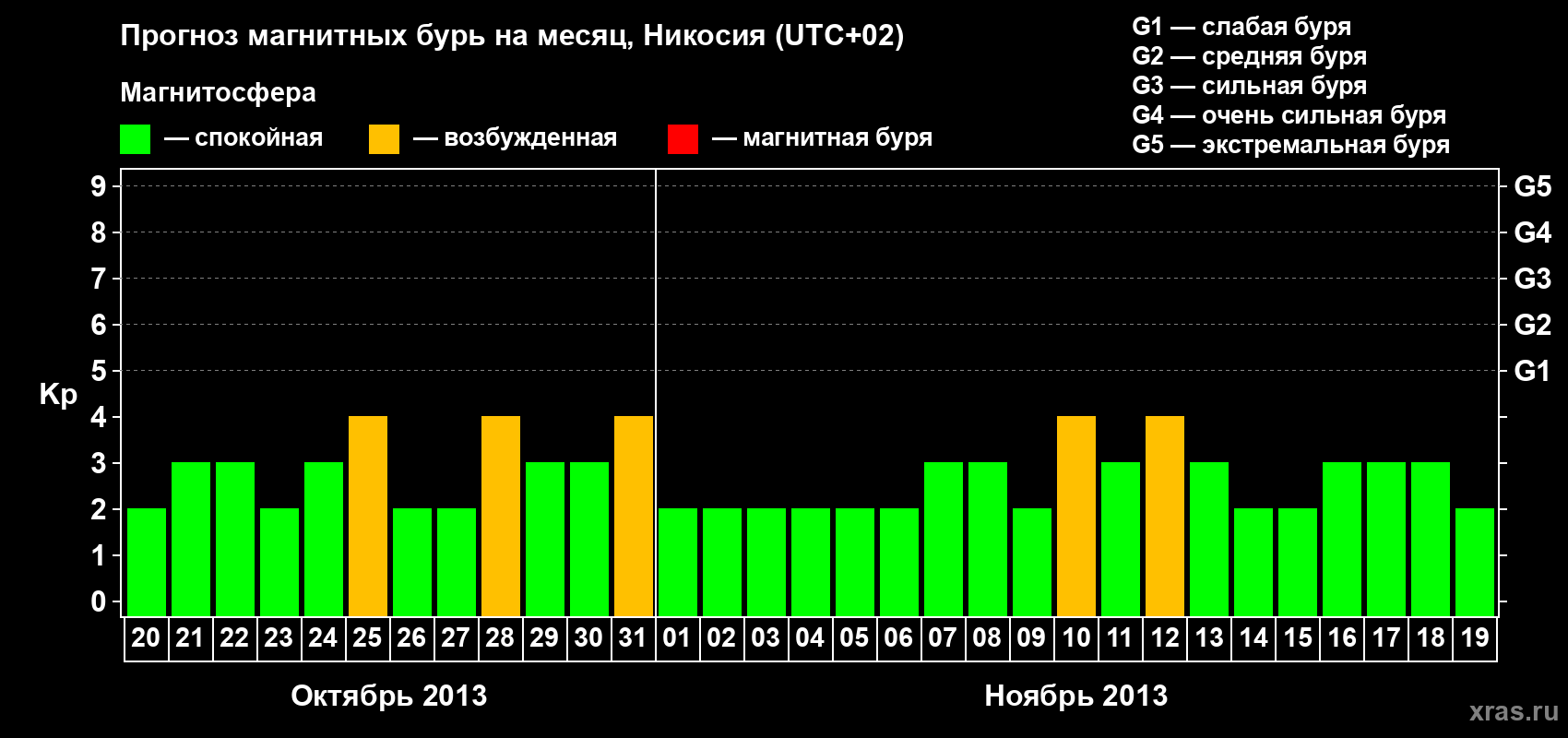 Прогноз магнитных бурь в Никосии — 20 октября 2013 года