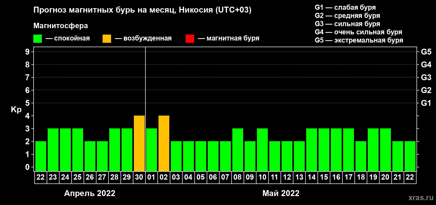 Прогноз магнитных бурь в Никосии — 22 апреля 2022 года