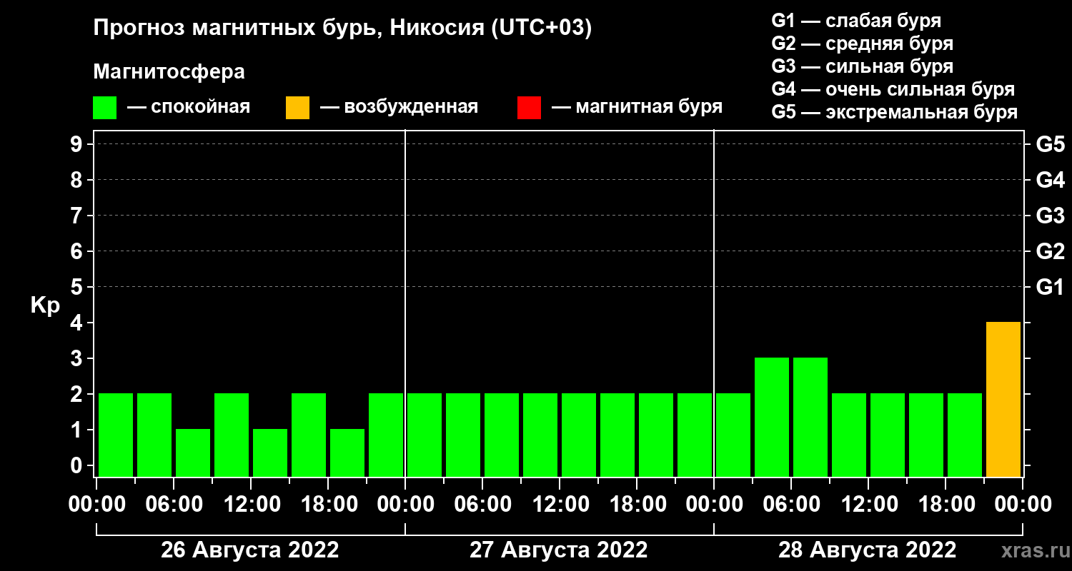 Прогноз магнитных бурь в Никосии — 26 августа 2022 года