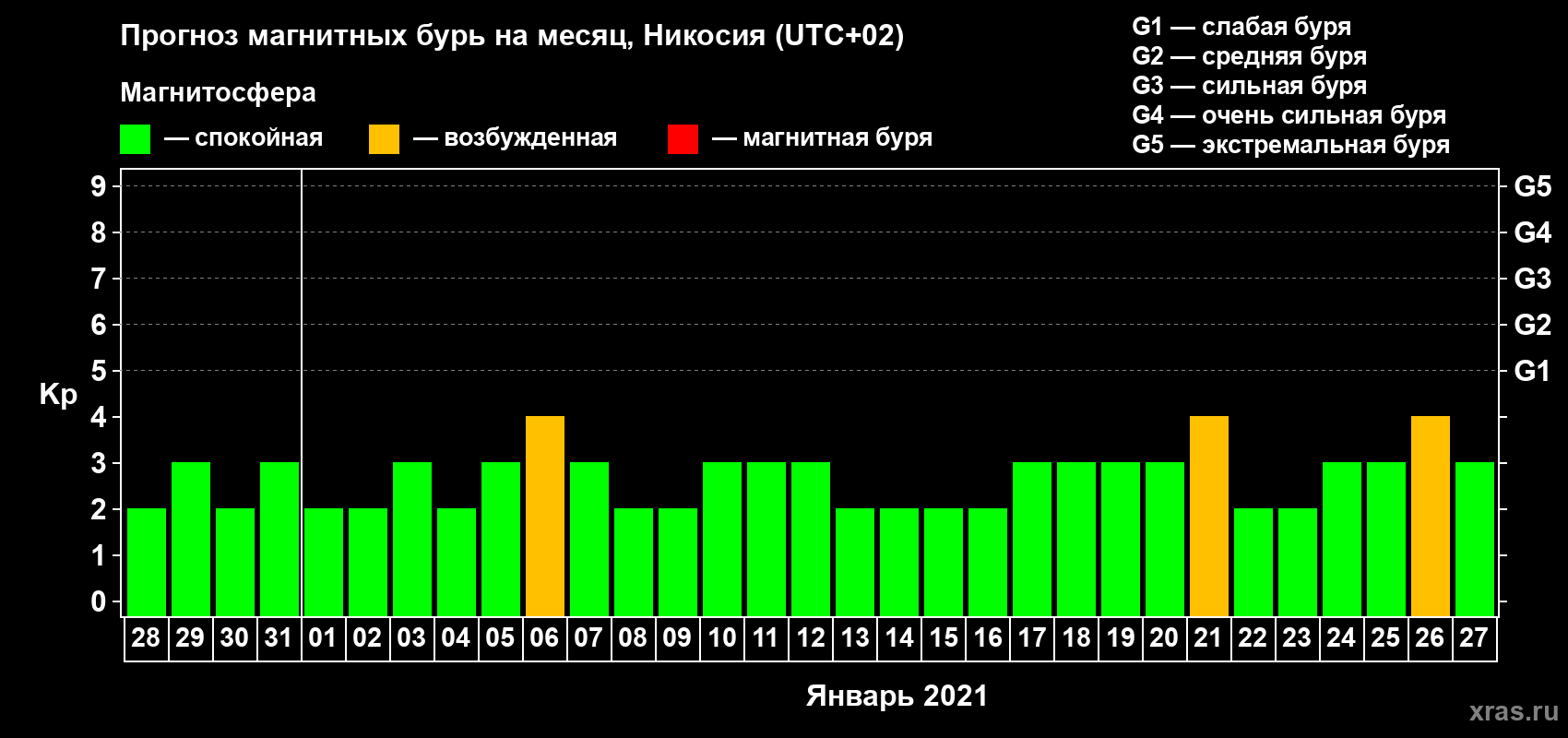 Прогноз магнитных бурь в Никосии — 28 декабря 2020 года