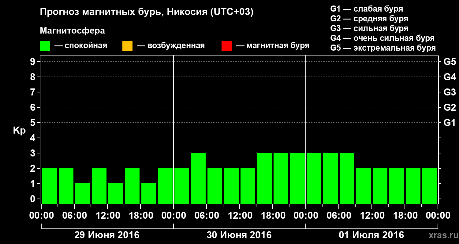 Прогноз магнитных бурь в Никосии — 29 июня 2016 года
