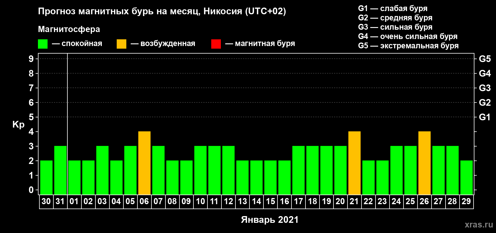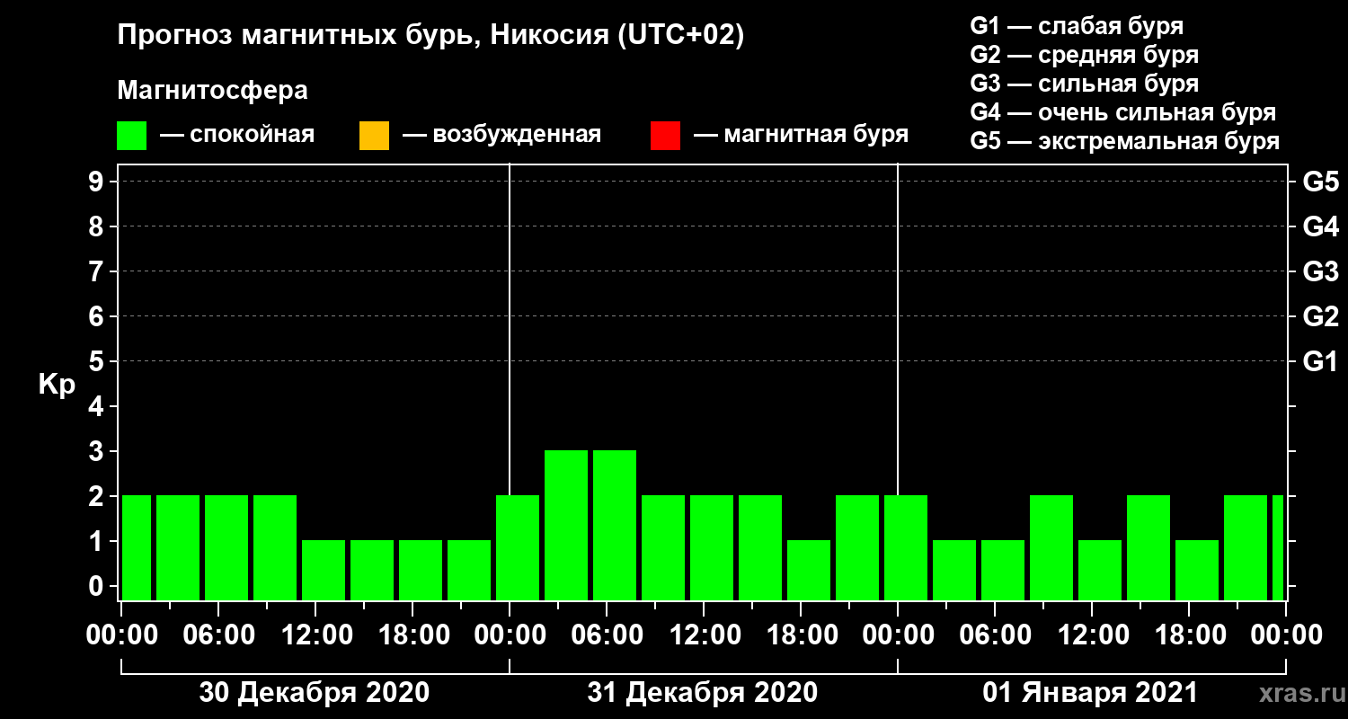 Прогноз магнитных бурь в Никосии — 30 декабря 2020 года
