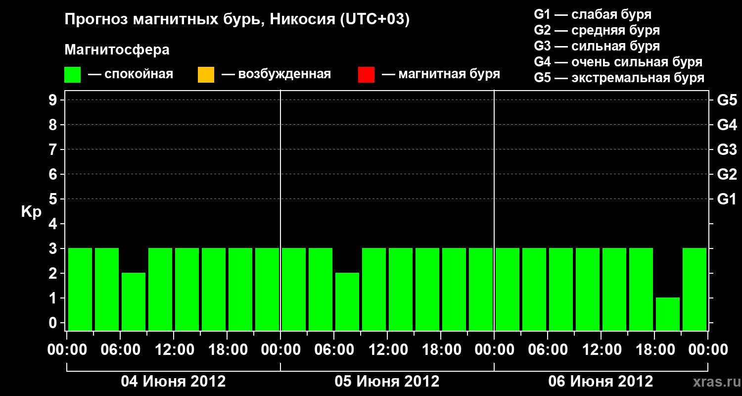 Прогноз магнитных бурь в Никосии — 4 июня 2012 года