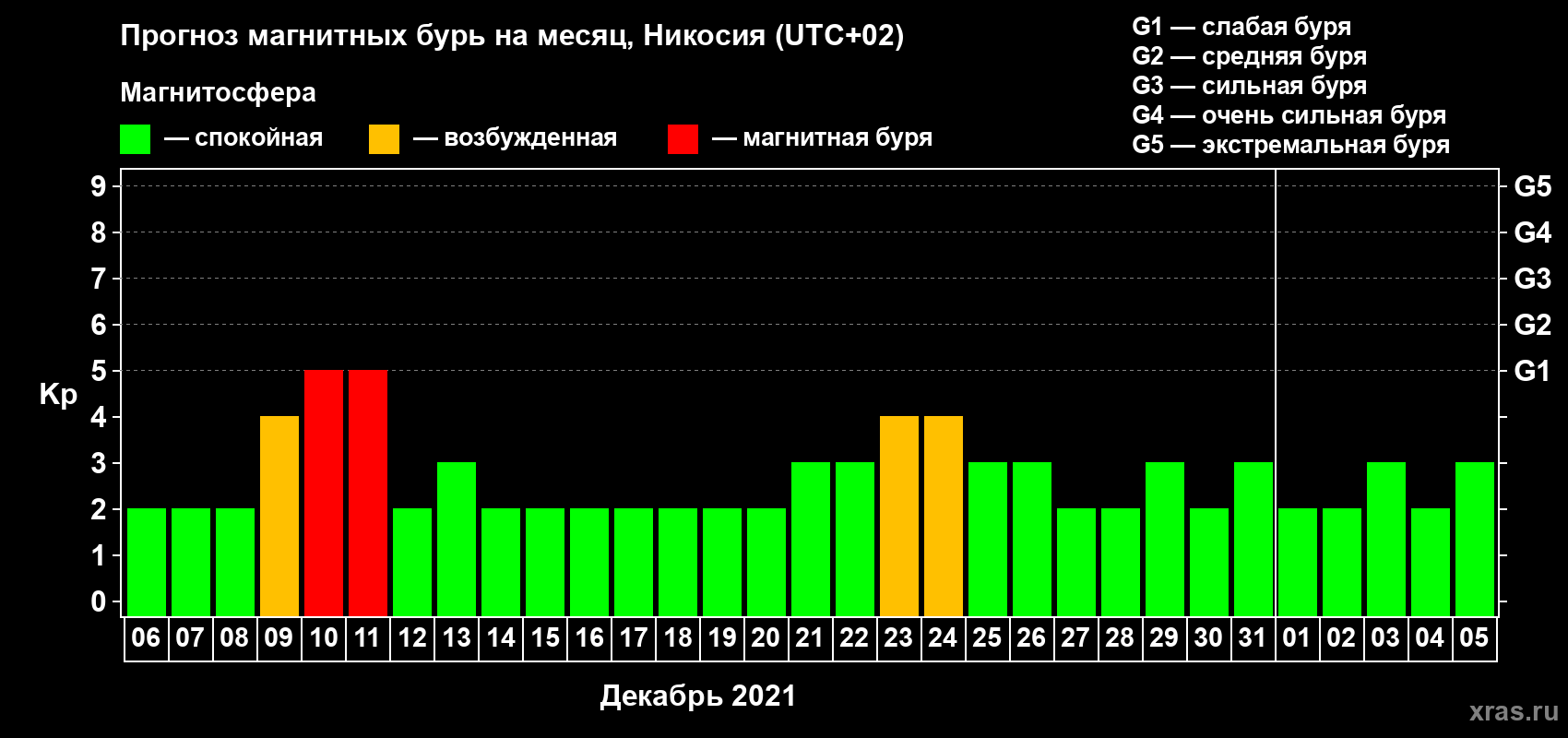Прогноз магнитных бурь в Никосии — 6 декабря 2020 года