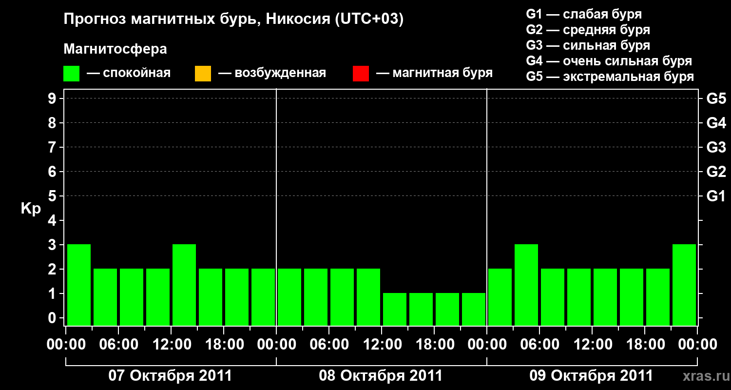 Прогноз магнитных бурь в Никосии — 7 октября 2011 года