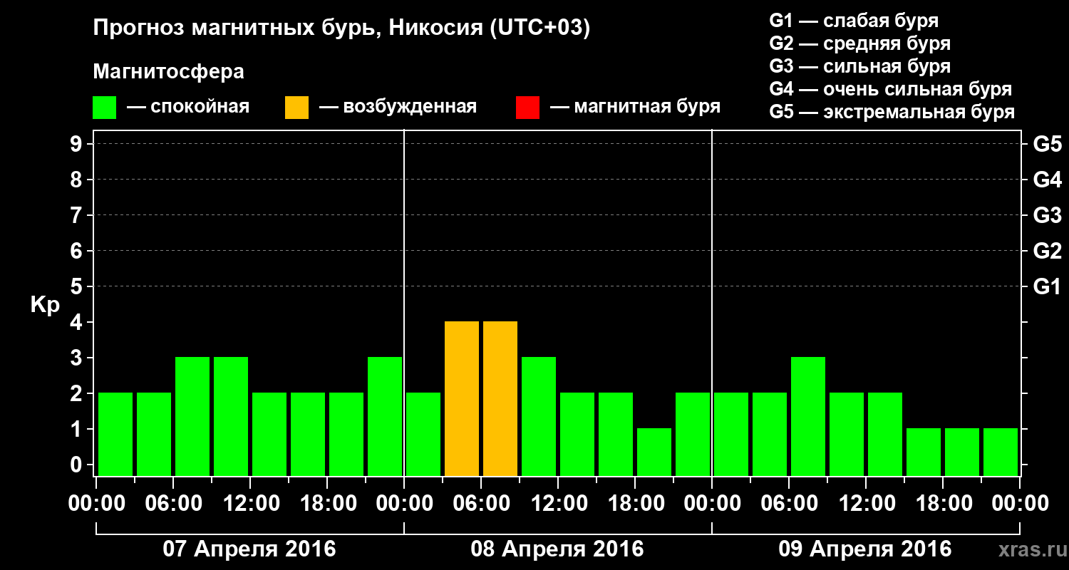 Прогноз магнитных бурь в Никосии — 7 апреля 2016 года