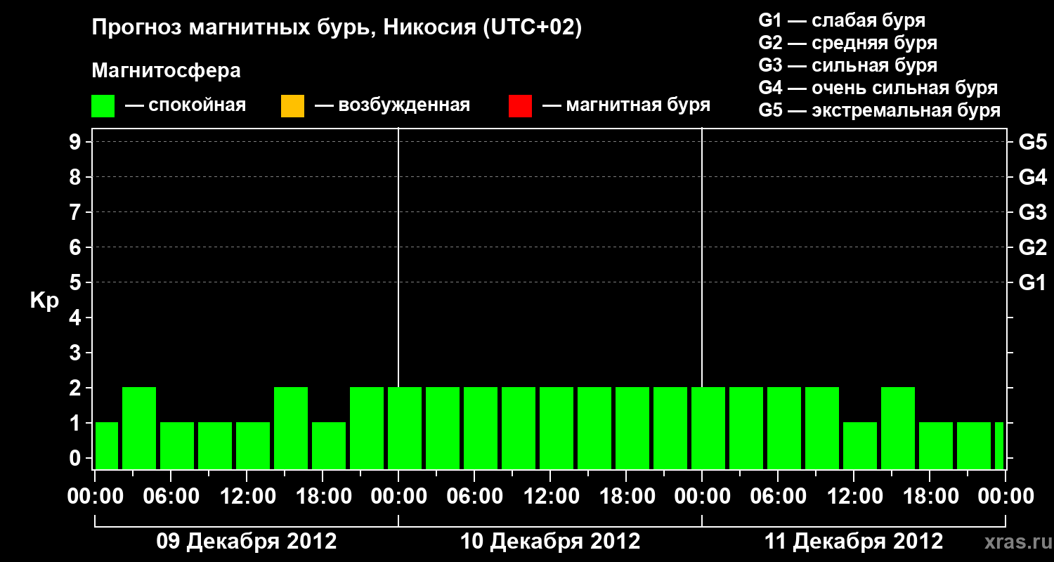 Прогноз магнитных бурь в Никосии — 9 декабря 2012 года