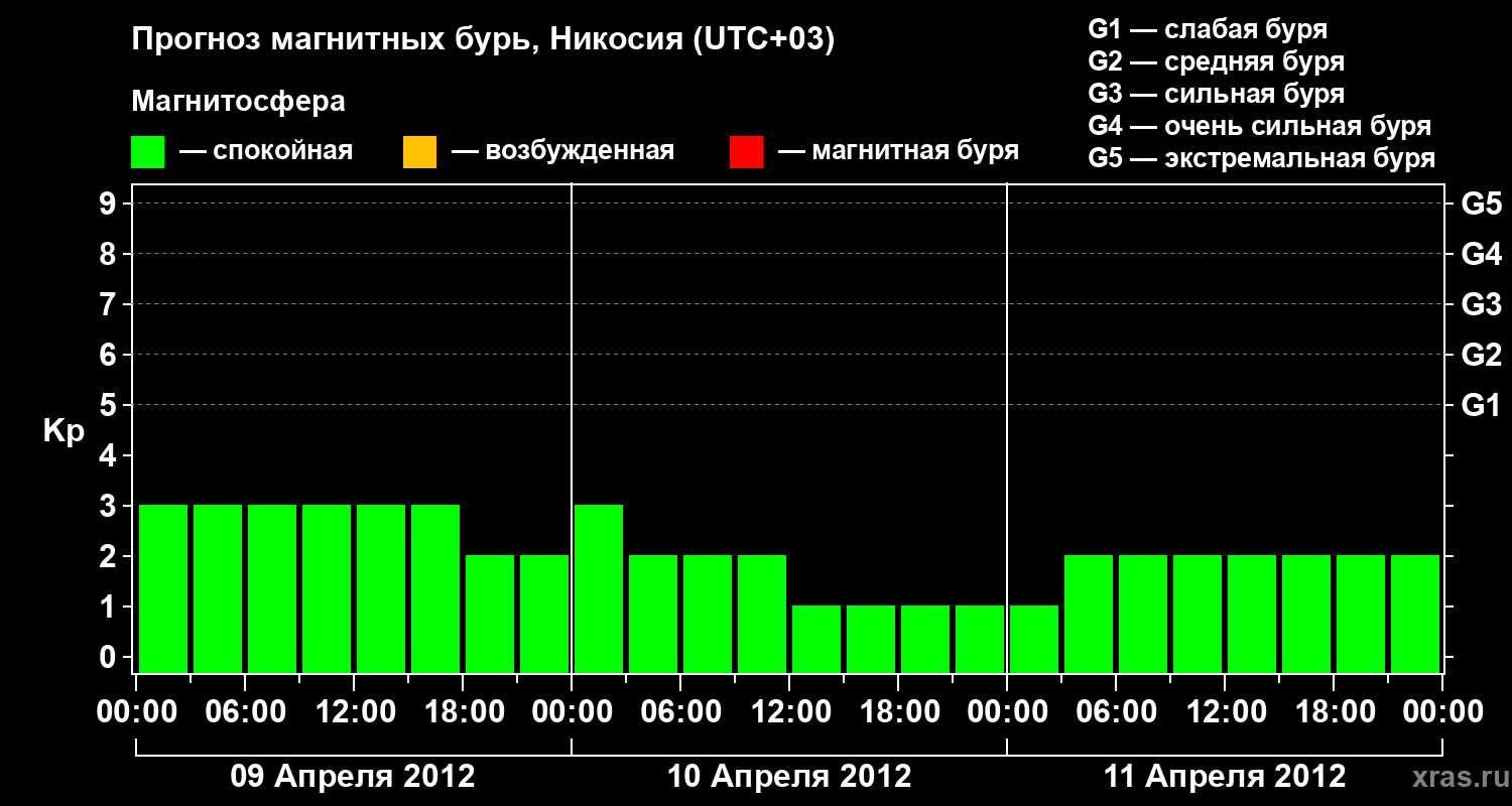 Прогноз магнитных бурь в Никосии — 9 апреля 2012 года