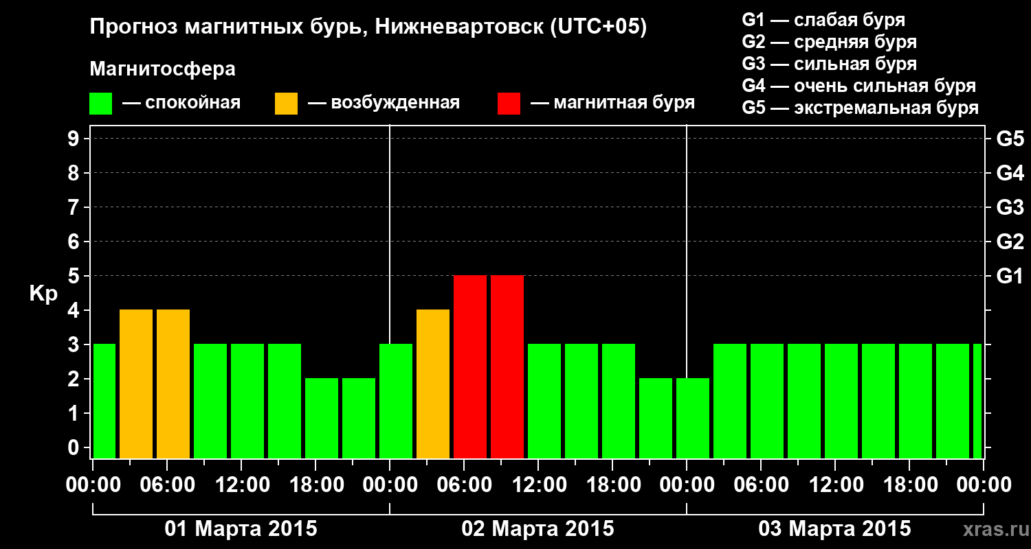 Прогноз магнитных бурь в Нижневартовске на 1 марта 2015 года