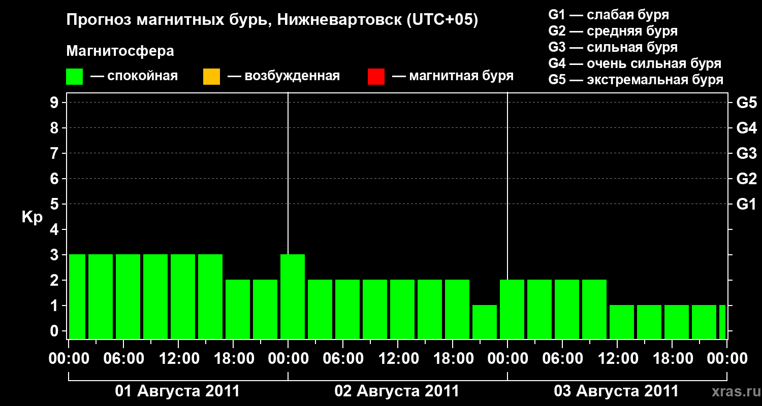 Прогноз магнитных бурь в Нижневартовске — 1 августа 2011 года