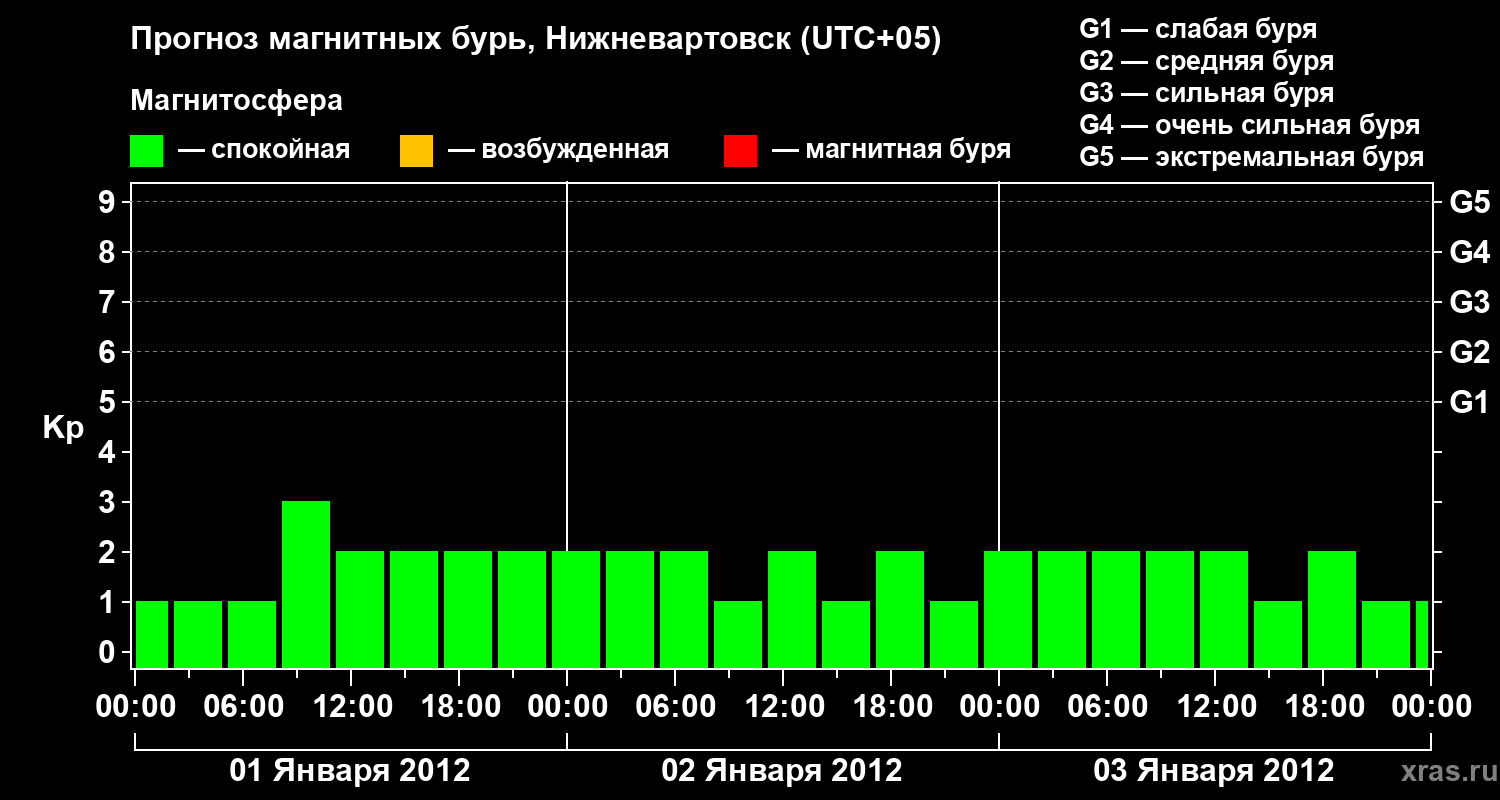 Прогноз магнитных бурь в Нижневартовске — 1 января 2012 года