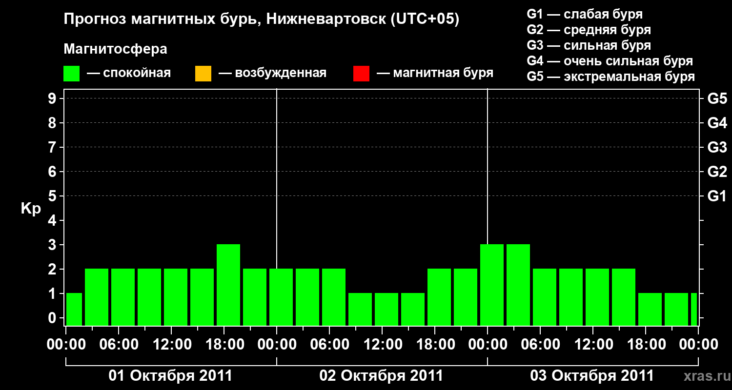 Прогноз магнитных бурь в Нижневартовске — 1 октября 2011 года