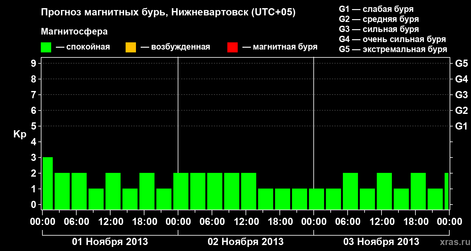 Прогноз магнитных бурь в Нижневартовске — 1 ноября 2013 года