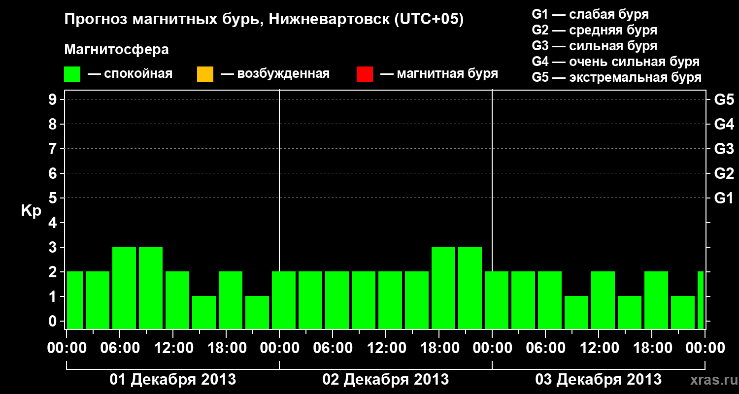 Прогноз магнитных бурь в Нижневартовске — 1 декабря 2013 года