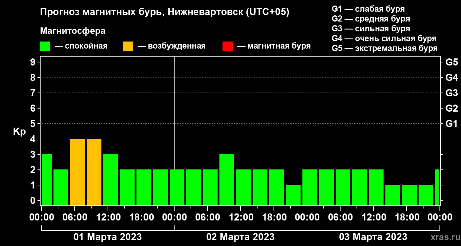 Прогноз магнитных бурь в Нижневартовске на 1 марта 2023 года