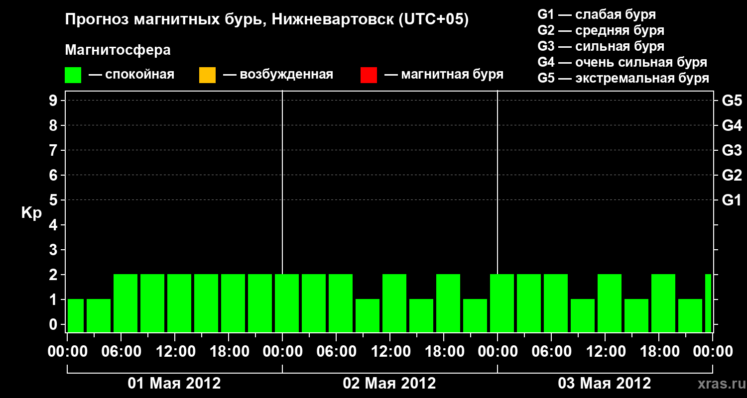 Прогноз магнитных бурь в Нижневартовске — 1 мая 2012 года