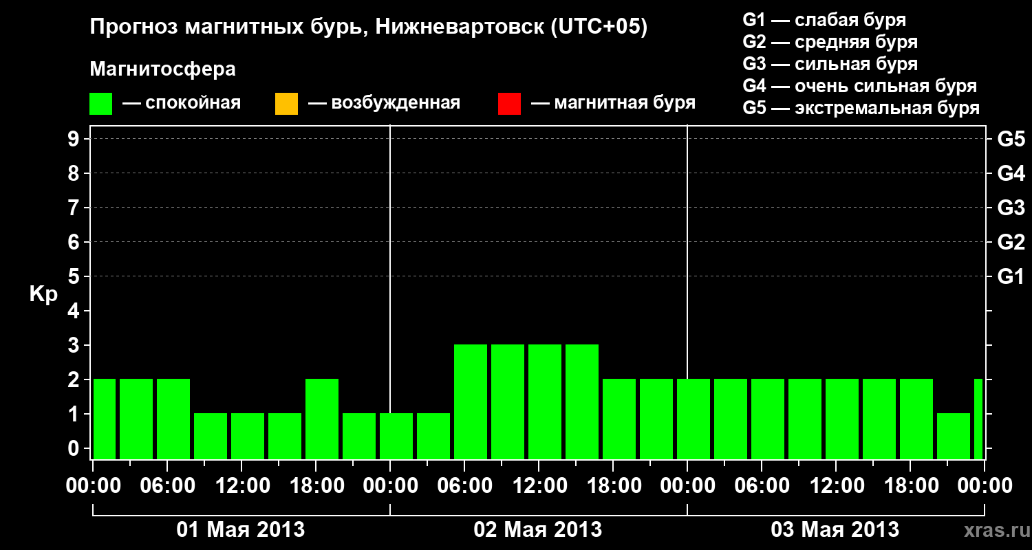 Прогноз магнитных бурь в Нижневартовске — 1 мая 2013 года