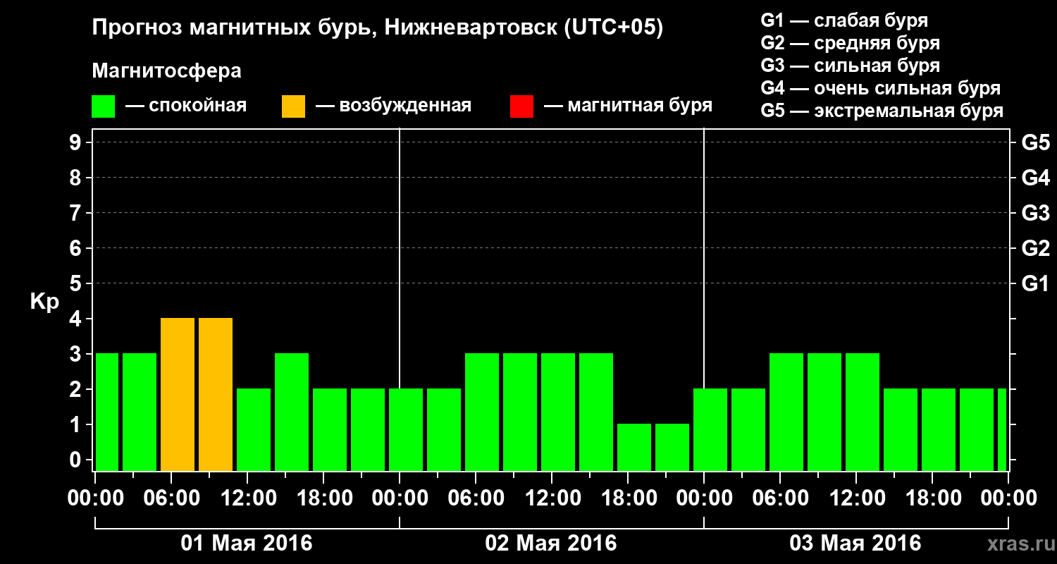 Прогноз магнитных бурь в Нижневартовске — 1 мая 2016 года