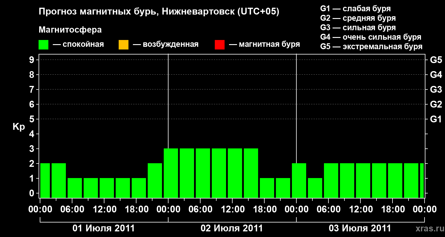 Прогноз магнитных бурь в Нижневартовске — 1 июля 2011 года