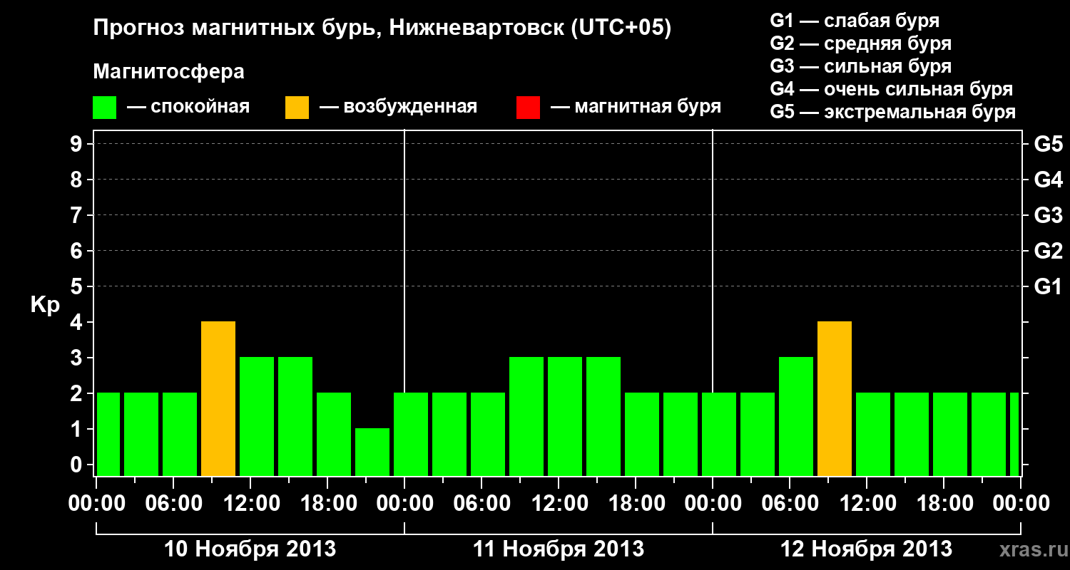 Прогноз магнитных бурь в Нижневартовске — 10 ноября 2013 года