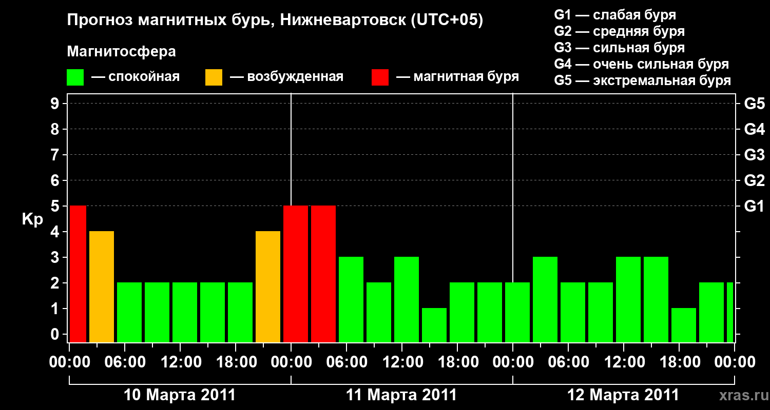 Прогноз магнитных бурь в Нижневартовске — 10 марта 2011 года
