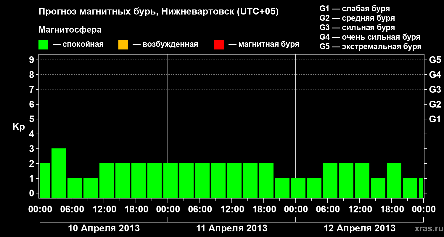 Прогноз магнитных бурь в Нижневартовске — 10 апреля 2013 года