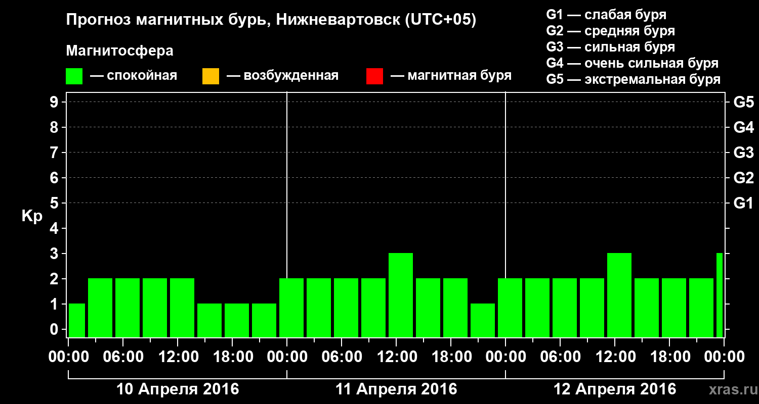 Прогноз магнитных бурь в Нижневартовске — 10 апреля 2016 года