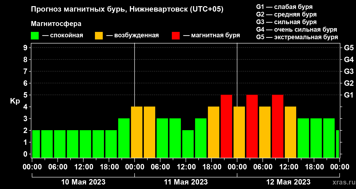 Прогноз магнитных бурь в Нижневартовске на 10 мая 2023 года