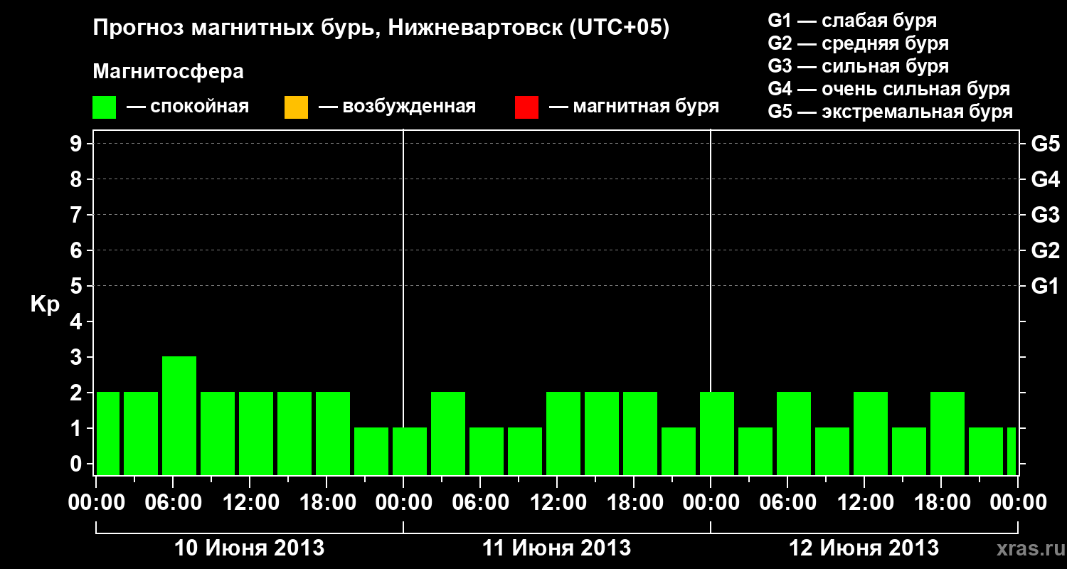Прогноз магнитных бурь в Нижневартовске — 10 июня 2013 года