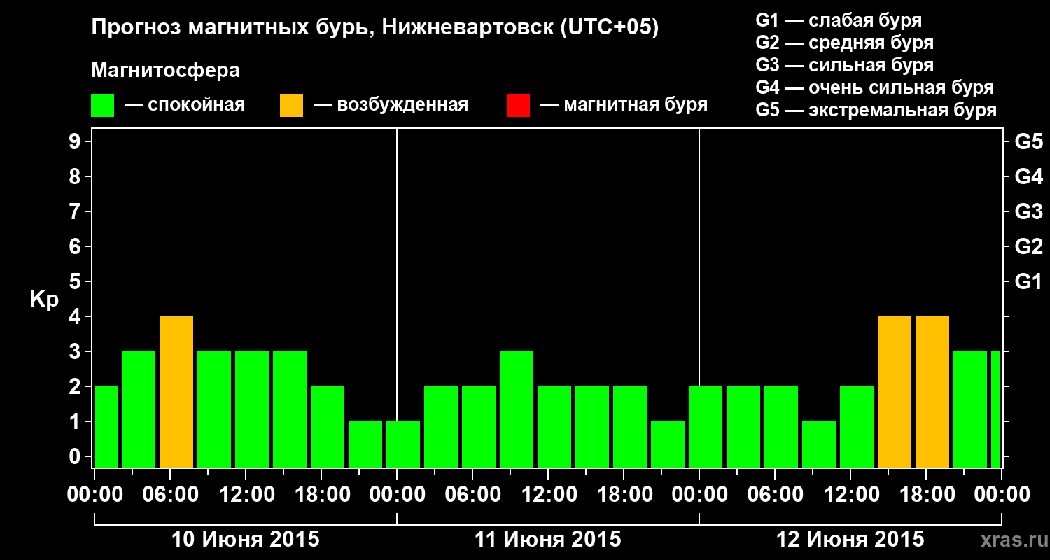 Прогноз магнитных бурь в Нижневартовске — 10 июня 2015 года
