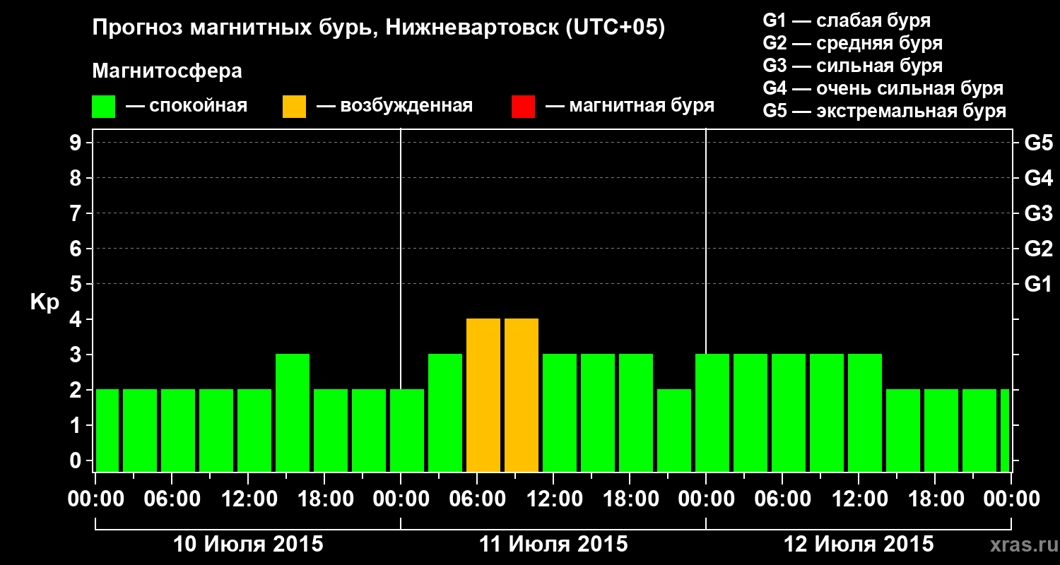 Прогноз магнитных бурь в Нижневартовске — 10 июля 2015 года