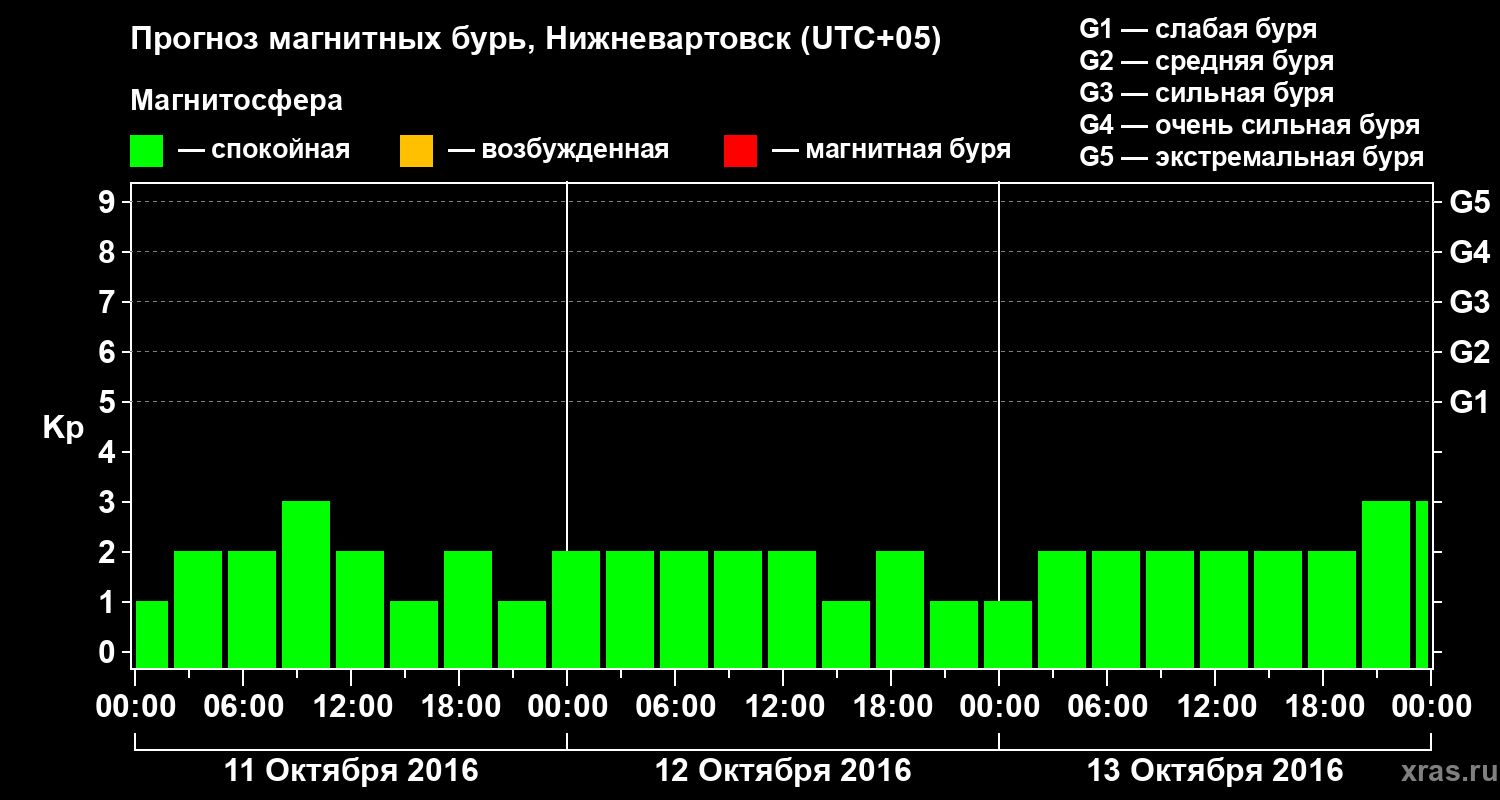 Прогноз магнитных бурь в Нижневартовске — 11 октября 2016 года