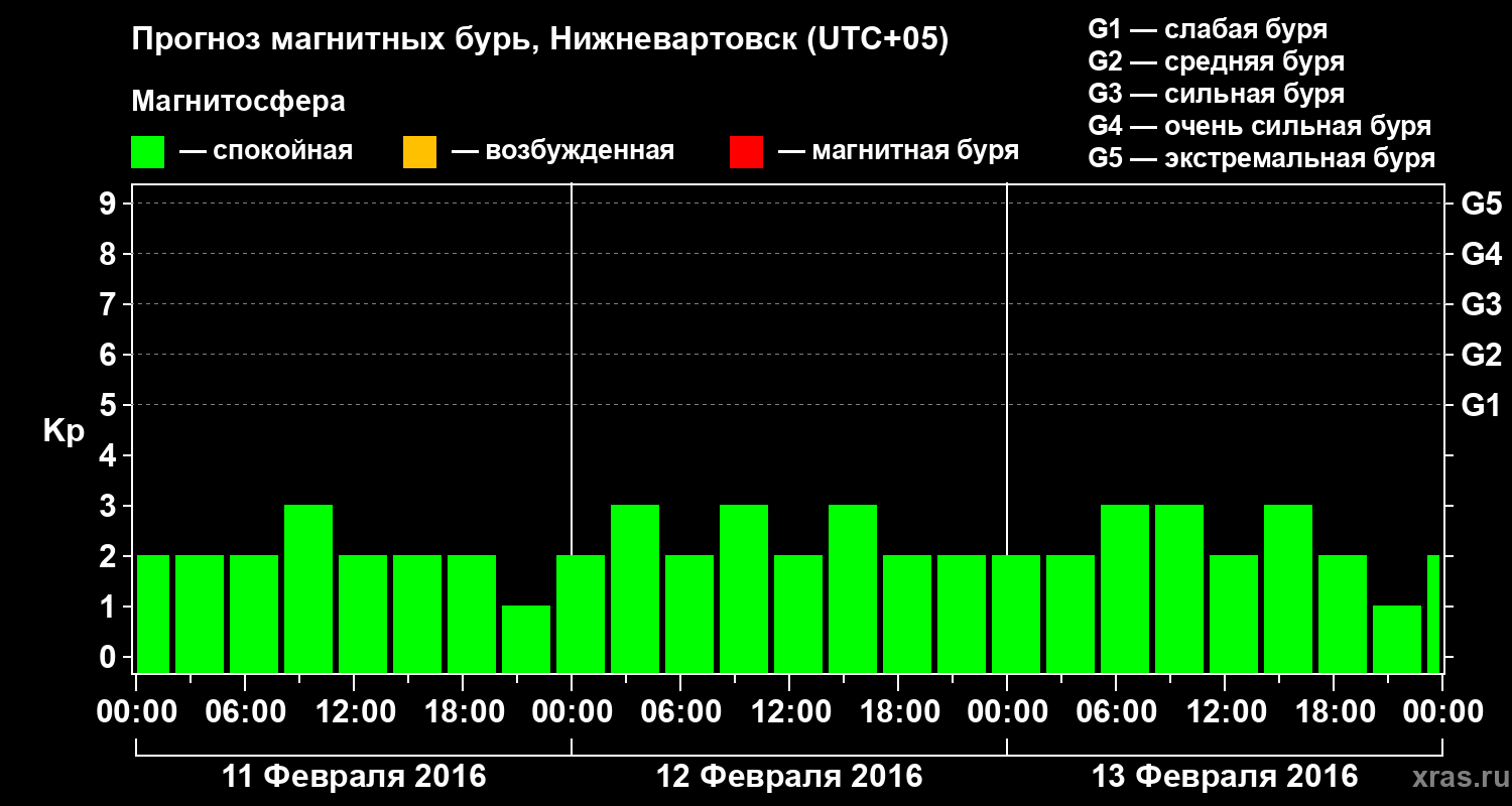 Прогноз магнитных бурь в Нижневартовске — 11 февраля 2016 года