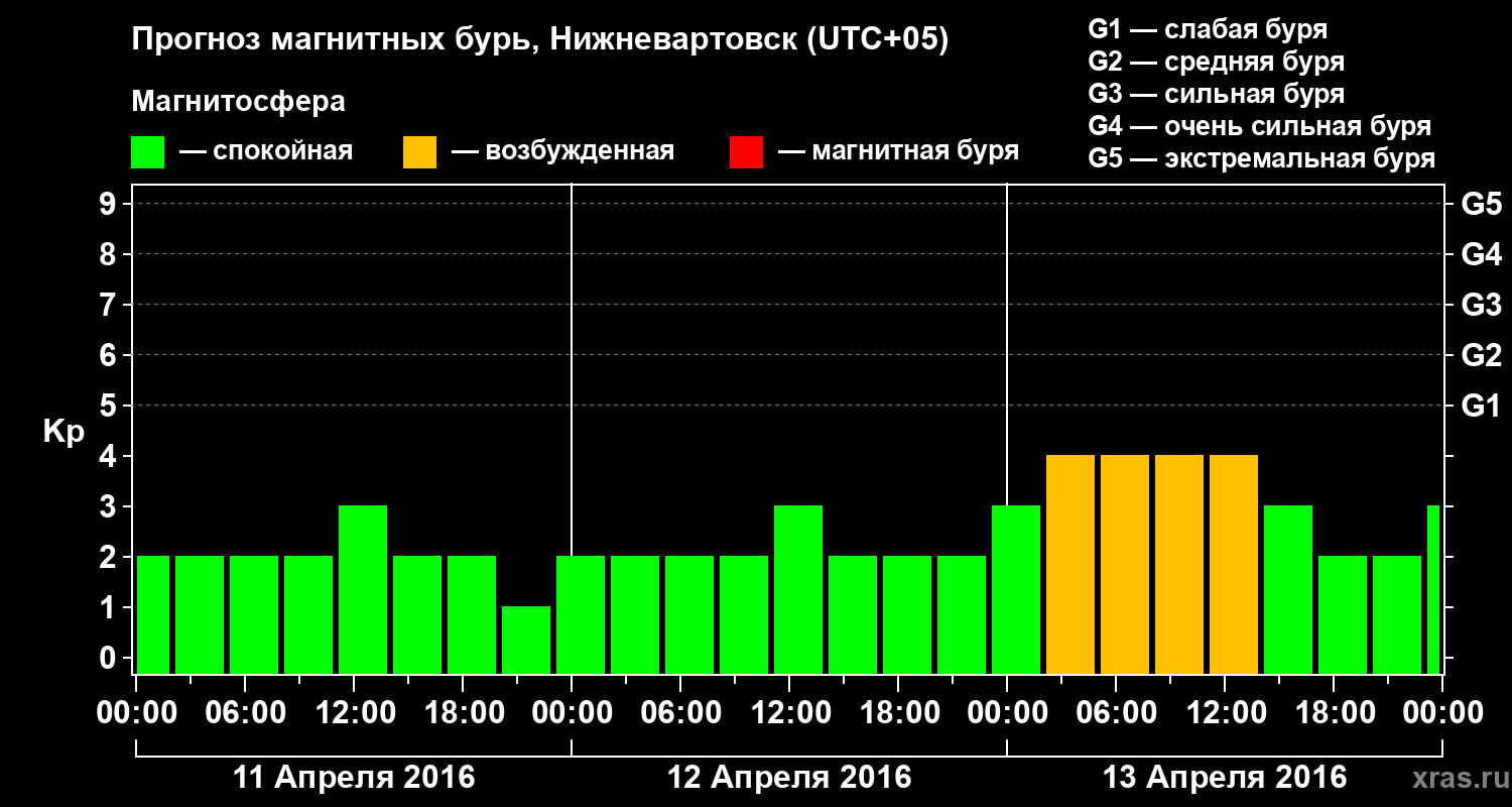 Прогноз магнитных бурь в Нижневартовске — 11 апреля 2016 года