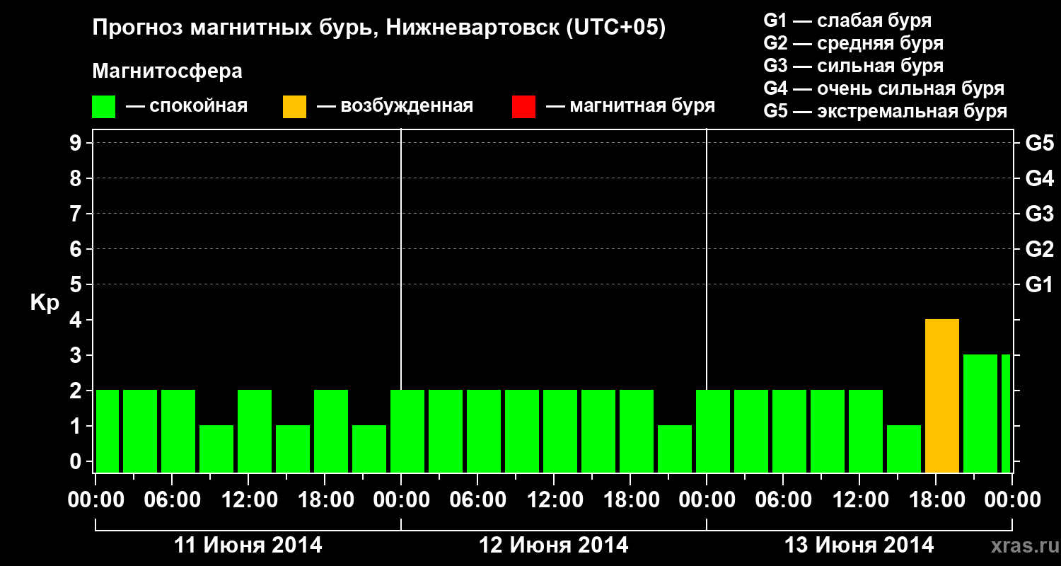 Прогноз магнитных бурь в Нижневартовске — 11 июня 2014 года