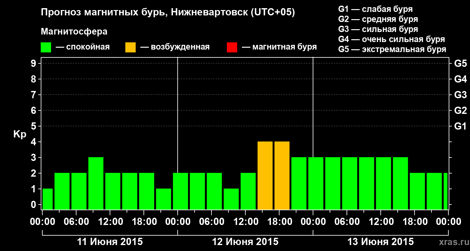 Прогноз магнитных бурь в Нижневартовске на 11 июня 2015 года