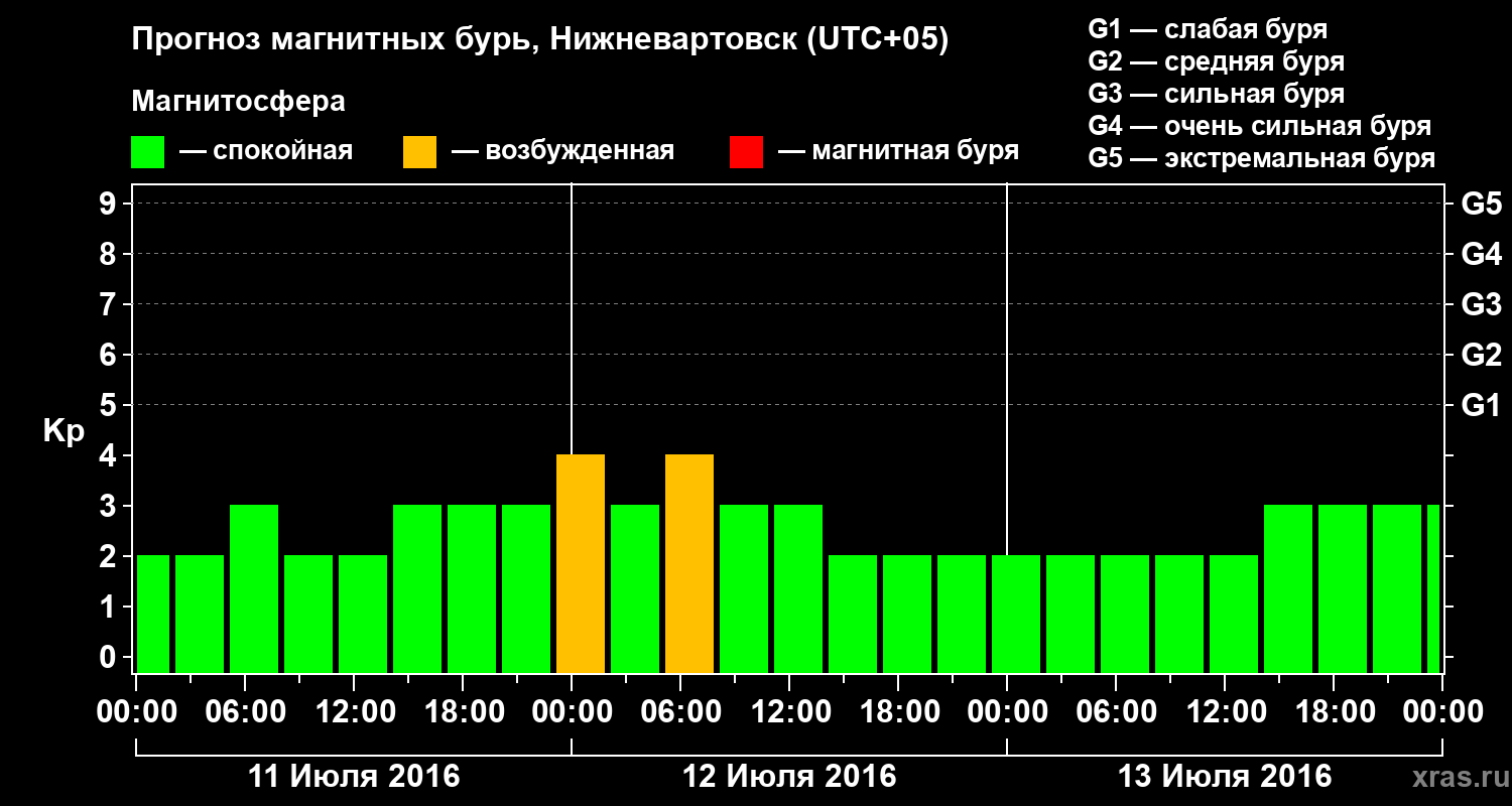 Прогноз магнитных бурь в Нижневартовске — 11 июля 2016 года