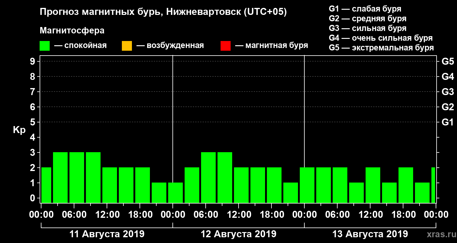 Прогноз магнитных бурь в Нижневартовске на 11 августа 2019 года