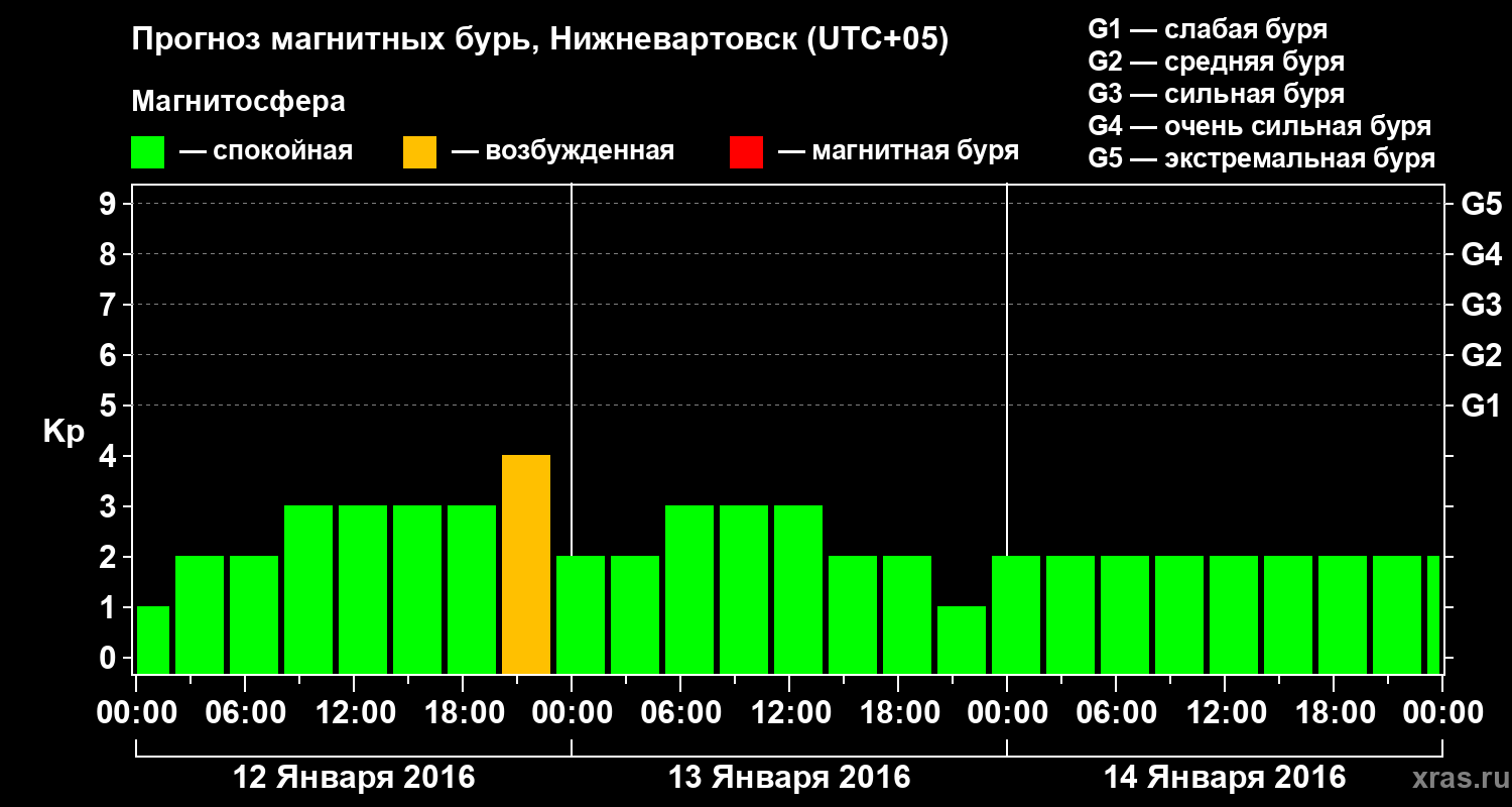 Прогноз магнитных бурь в Нижневартовске — 12 января 2016 года