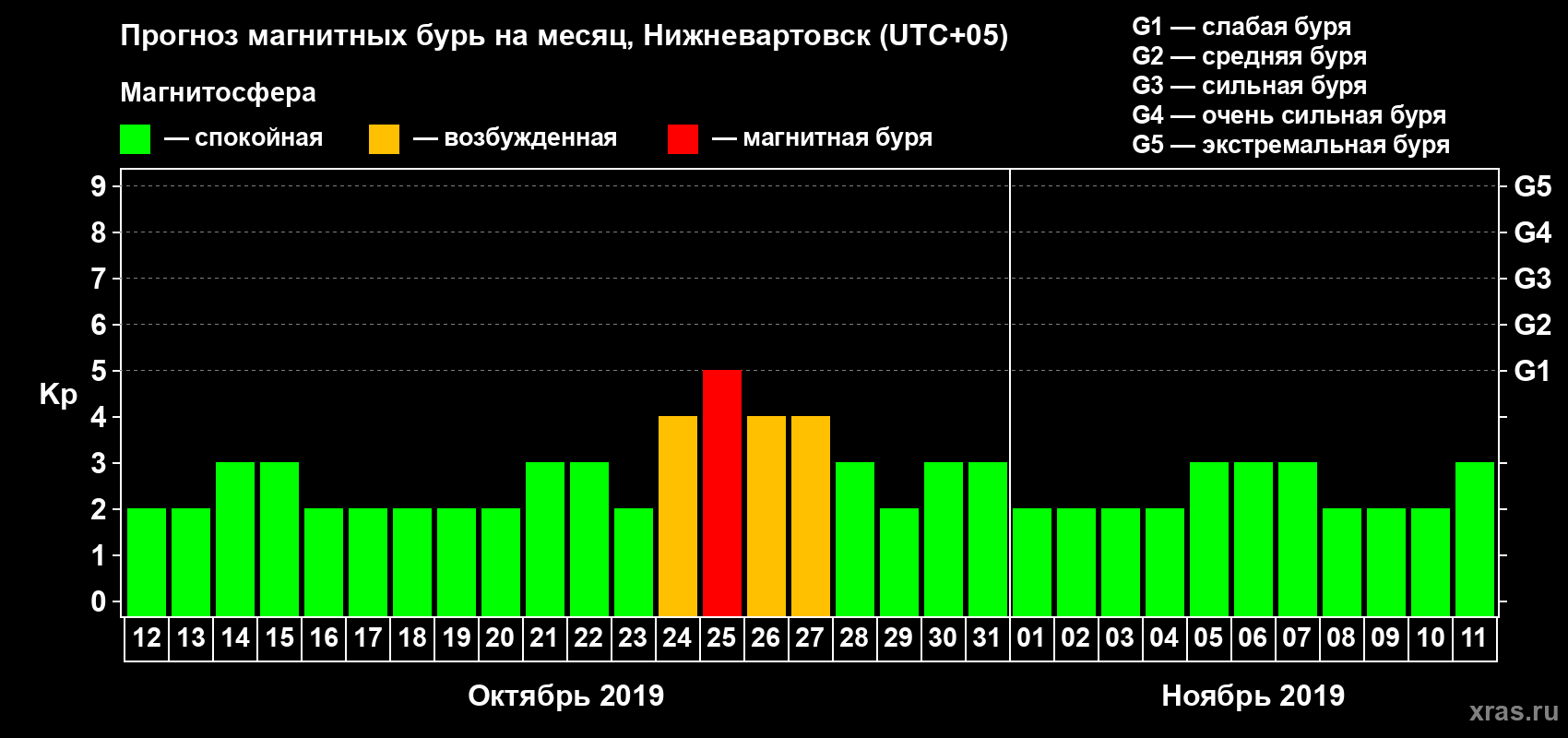 Прогноз магнитных бурь в Нижневартовске — 12 октября 2019 года