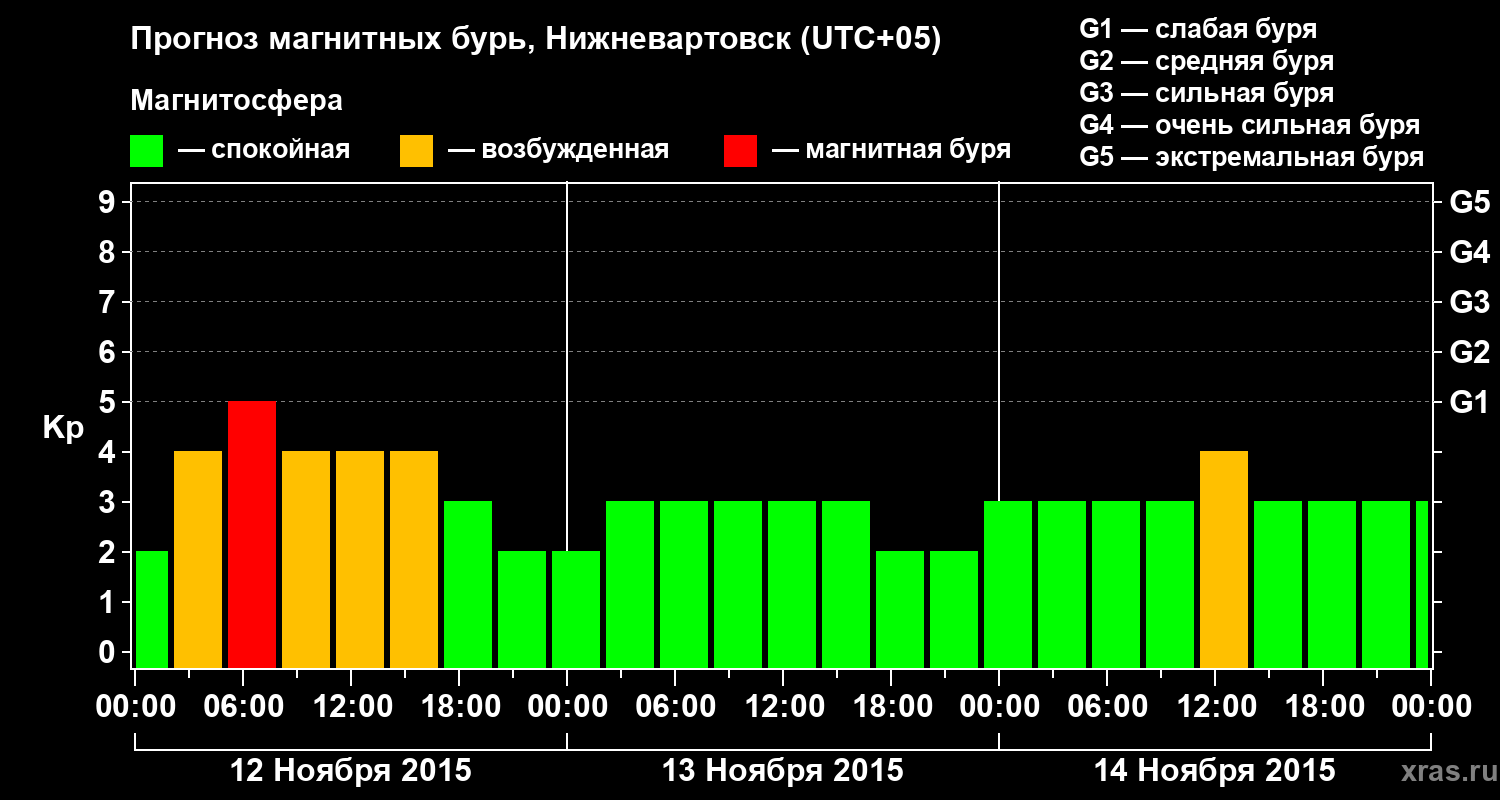 Прогноз магнитных бурь в Нижневартовске — 12 ноября 2015 года