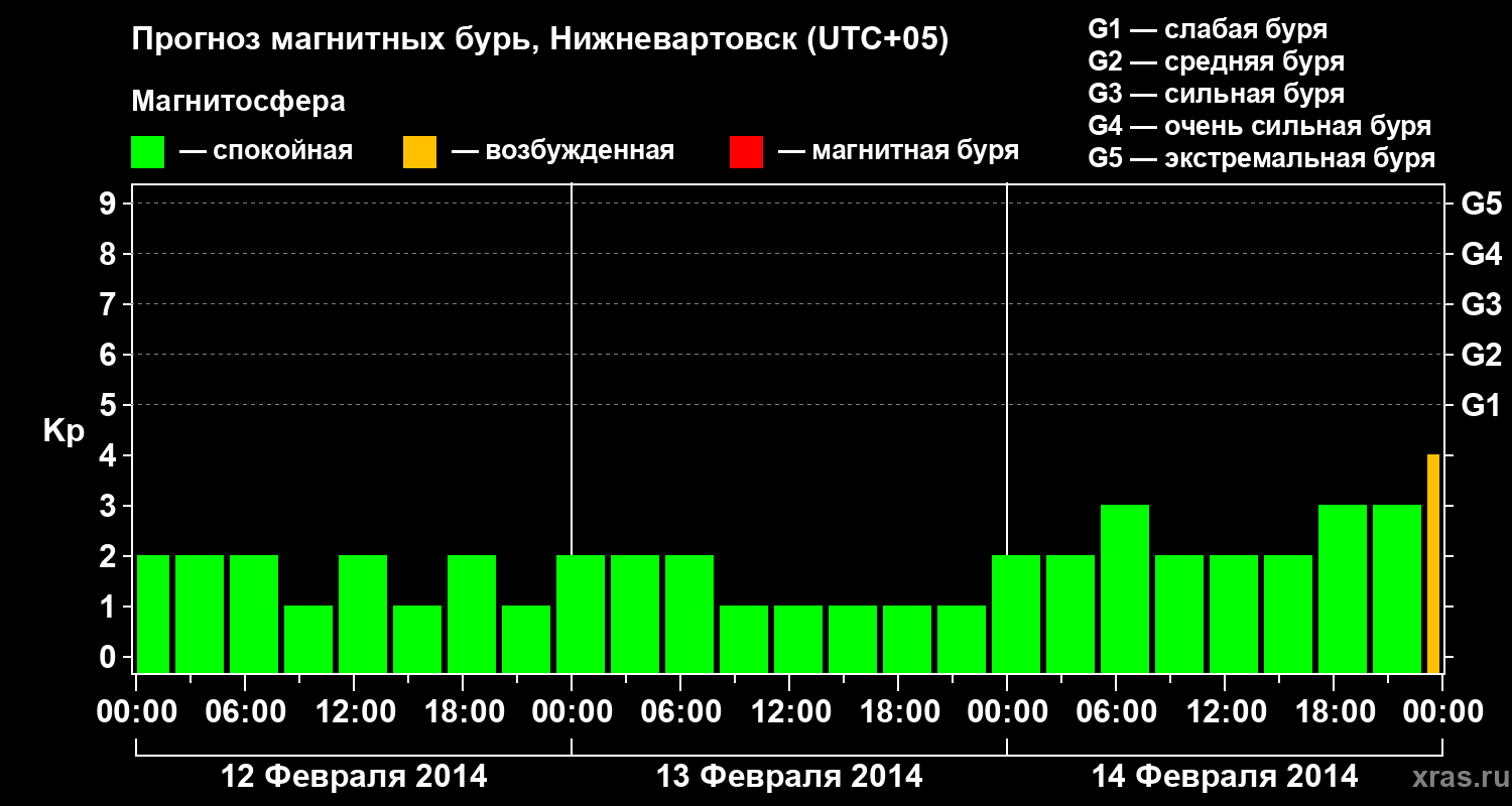 Прогноз магнитных бурь в Нижневартовске — 12 февраля 2014 года