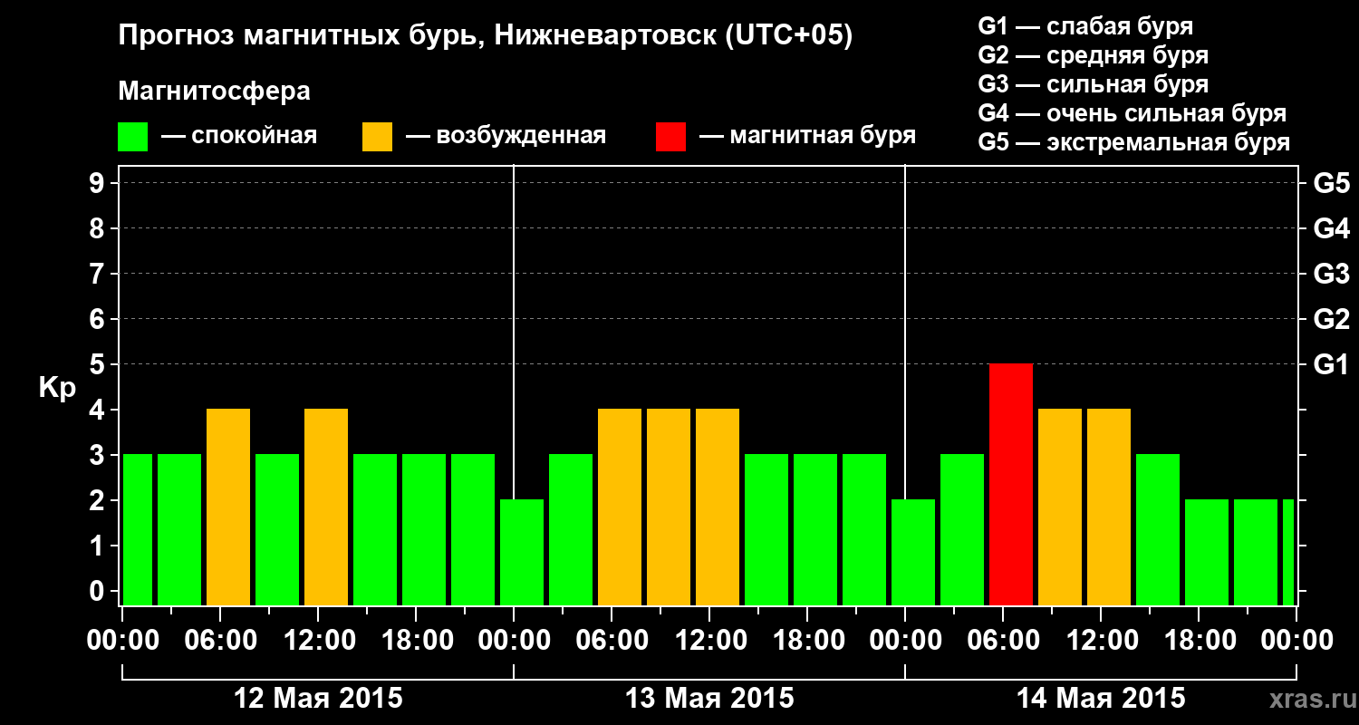 Прогноз магнитных бурь в Нижневартовске на 12 мая 2015 года
