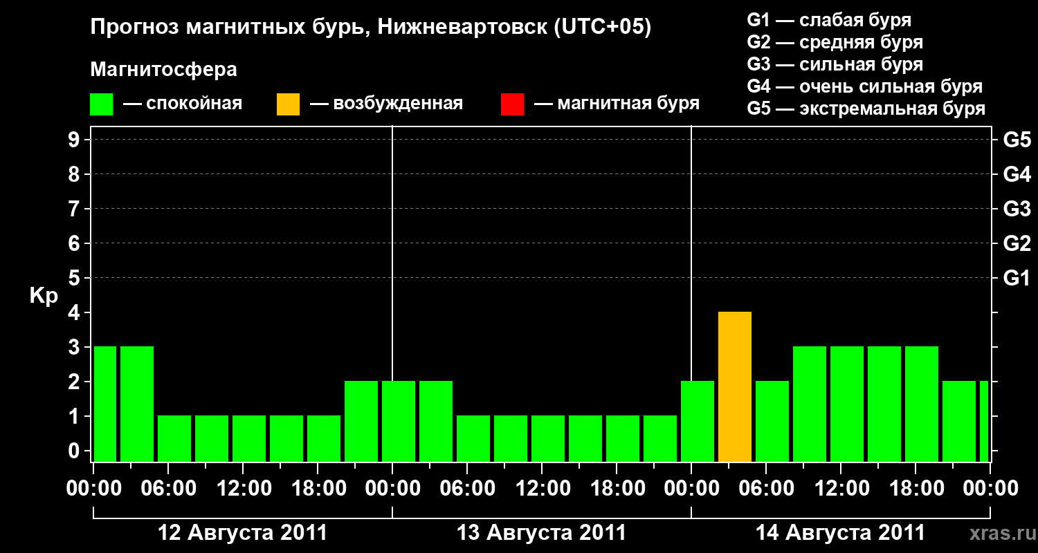 Прогноз магнитных бурь в Нижневартовске — 12 августа 2011 года