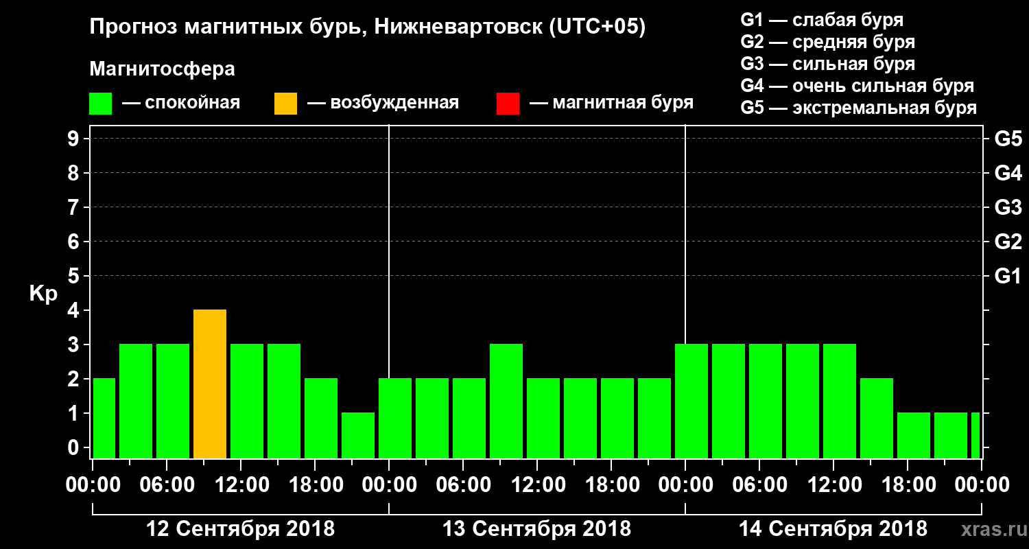 Прогноз магнитных бурь в Нижневартовске на 12 сентября 2018 года