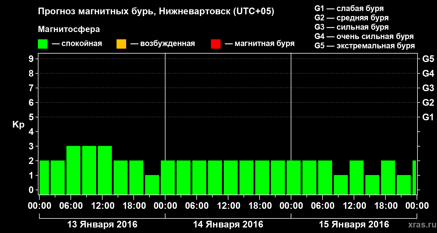 Прогноз магнитных бурь в Нижневартовске — 13 января 2016 года