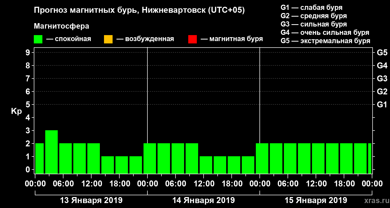 Прогноз магнитных бурь в Нижневартовске — 13 января 2019 года